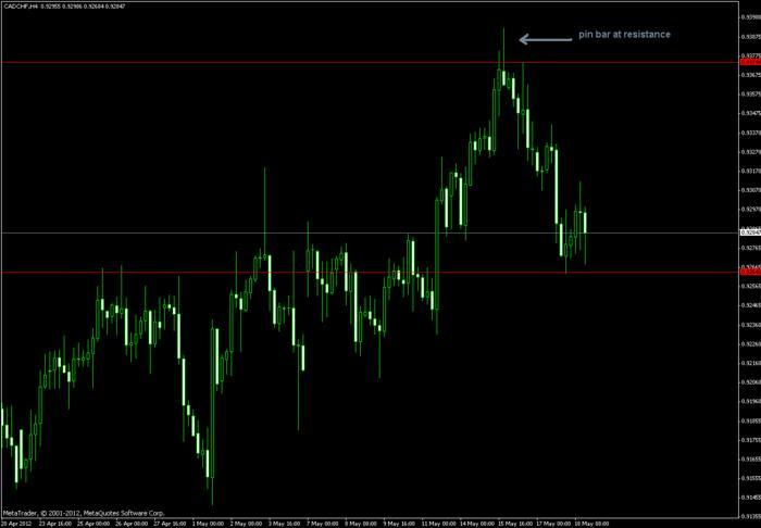 2)EURCAD and CADCHF - inversely correlated pairs that showed the same setups in opposite directions. i was looking for a small retrace trade against the main trend in both cases. price formed a strong pa signal on both the daily and 4h charts for both pairs, which makes them a+ setups (yes?no?) albeit if only for a short retracement. so the pa that forms on the daily charts, is reinforced by pa on the 4h charts. both trades were open for about 22 hours and again, were triggered early in the asian session and hit t/p the next day just after new york close (not sure if any of this makes a difference, but in the other pa thread by dnb he says he tries to avoid trades that are triggered early in the asian session)