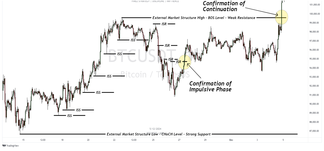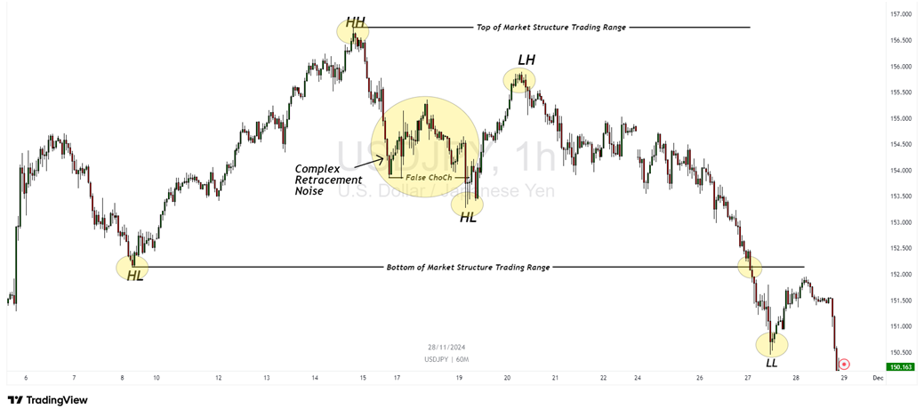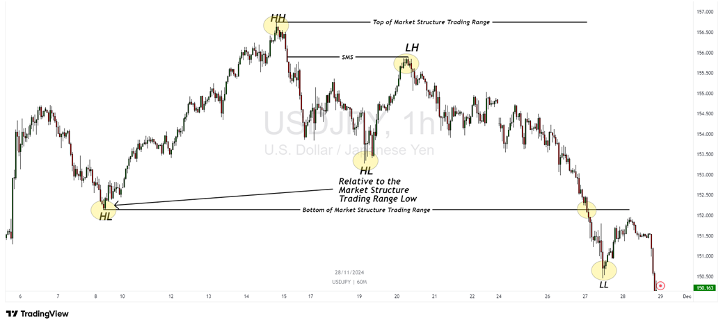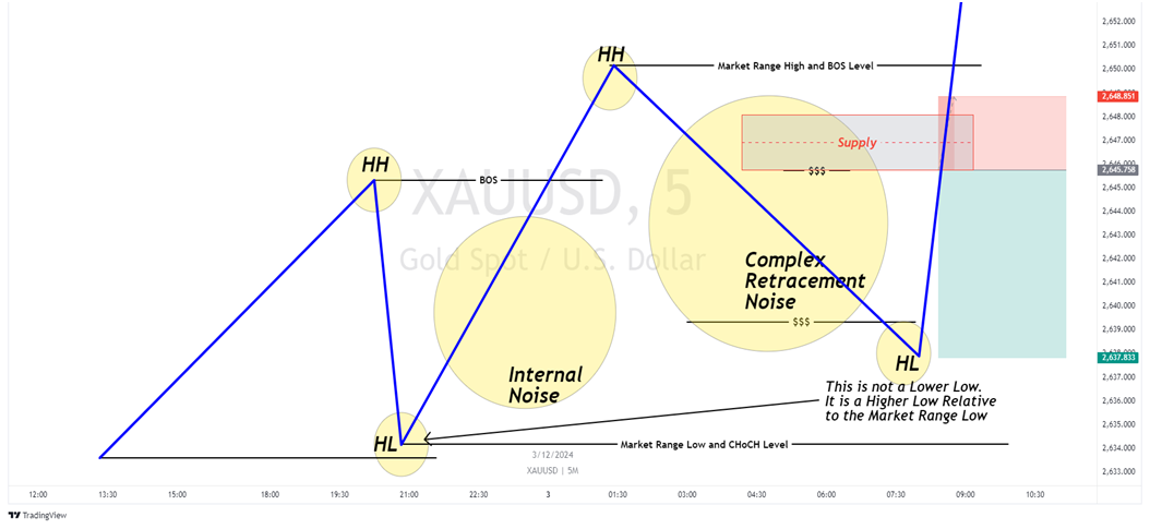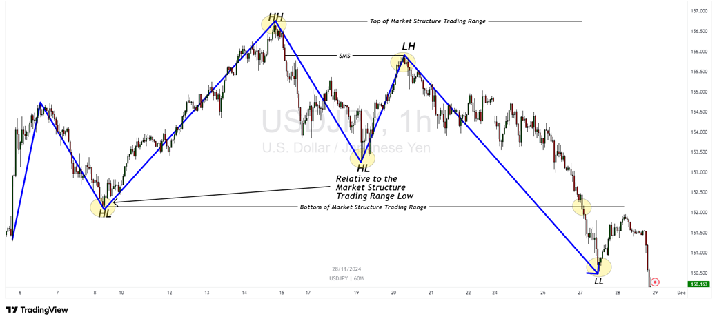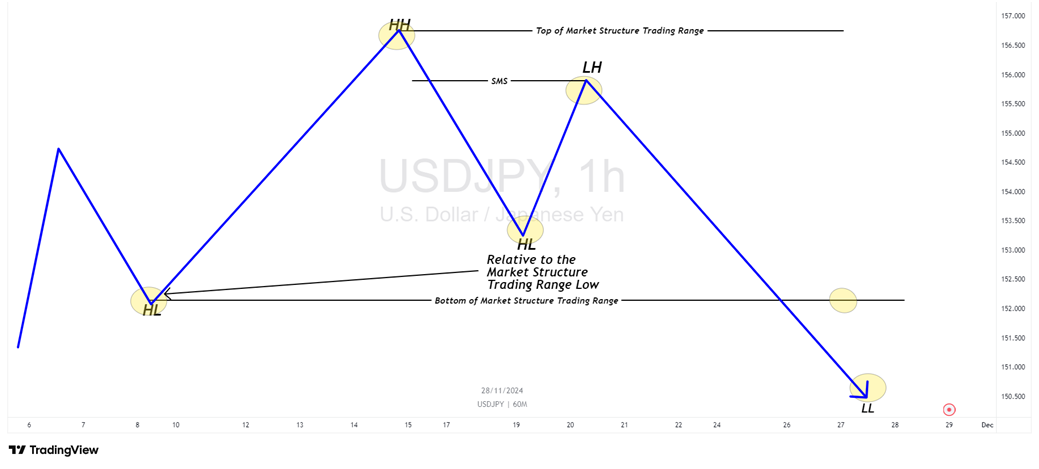 I want to discuss Market Structure thoroughly, so I’m going to start from the very basic beginning. The beginning part of this may be a review for some of you but it will ramp up as we go along. If you’re wondering about the difference between Market Structure and Price Action, you can read my response to that question here: Market structure vs price action - #4 by MartialChartsFX.