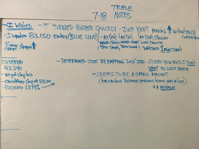 The third week mostly centered around the specifics of my strategy. I felt I needed to get to the bottom of the specifics concerning how I generate money. Each and every trade got some serious diagnosis. And we’re talking about as it happens live. By the end of the week I came up with a good trades templet to work off of. So, the microscope has been out concerning my trading. Resulting in rules, lessons along the way. And now I’ve gotten to the point where I can’t tweek my strategy too much more.