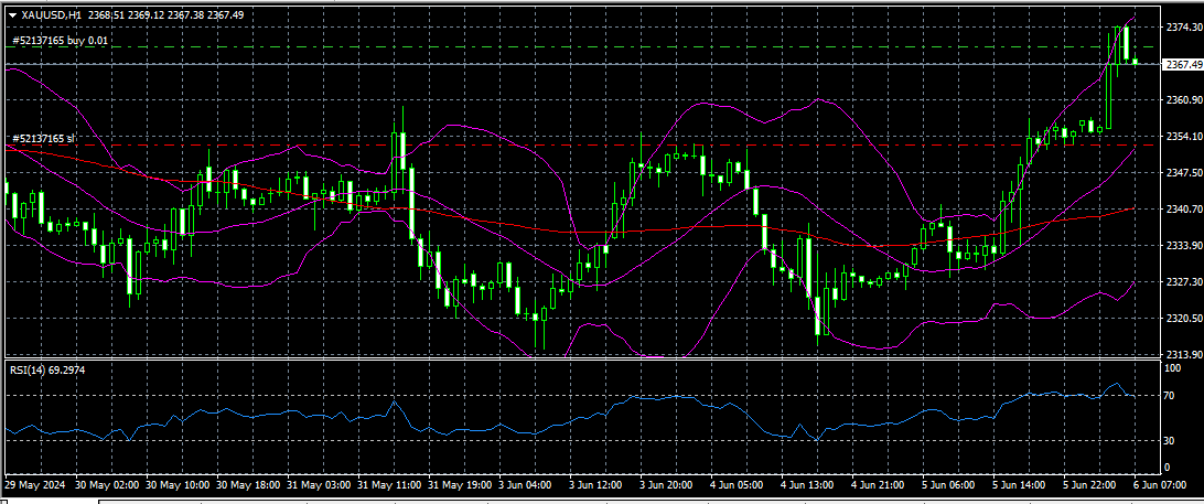 Today, I just tried my luck by opening a buy with the technical reason that the price had broken the $2357 price level which had been resistance for several days.