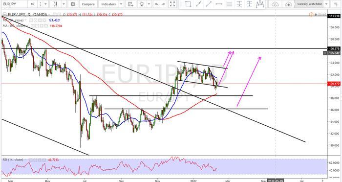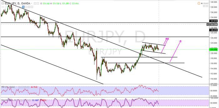 we left the big daily falling channel to the upside now price forms kind of a flag (continuation pattern)