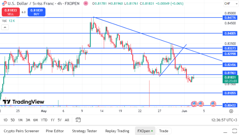 Hello everyone and have a good fruitful day! On the USDCHF pair on the H4 timeframe, a downward trend is observed, towards which it is better to continue trading. At the same time, on the H1 timeframe, a technical analysis figure “triangle” has formed, the lower side of which the price has broken downwards. Therefore, I am considering sales with the target of the support level of 0.8214.