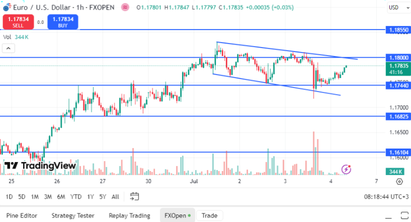 Hello everyone! The EURUSD pair price during its upward movement reached the psychological level of 1.18, having rebounded downwards from it. I am considering sales within the framework of the rollback, where the target for this downward correctional movement may be the support level of 1.1744.